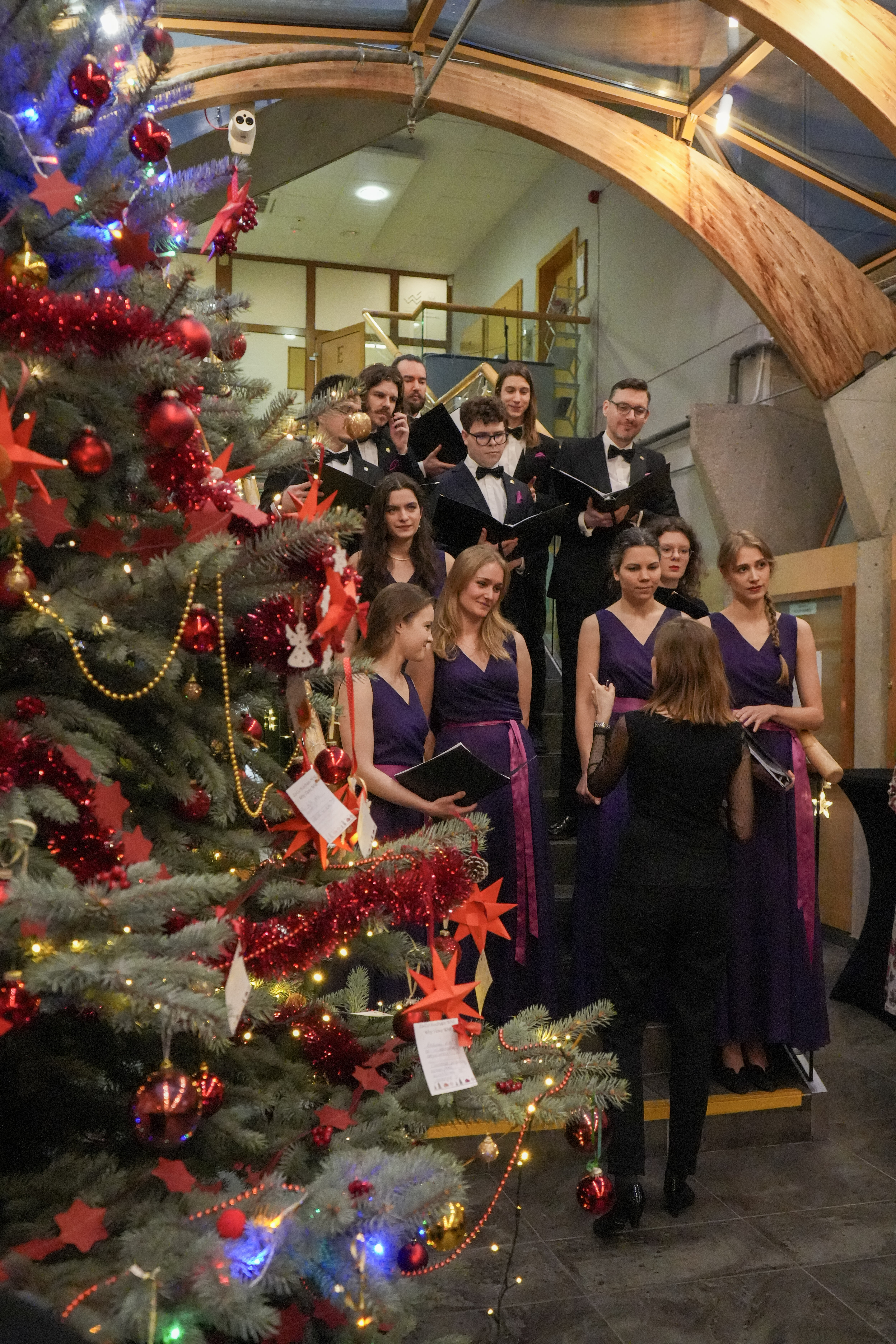 Wzruszającym występem uświetnił grudniowe spotkanie Chór Akademicki Uniwersytetu Warszawskiego. Zabrzmiały kolędy i utwory świąteczne w mniej znanych aranżacjach, po polsku i angielsku.